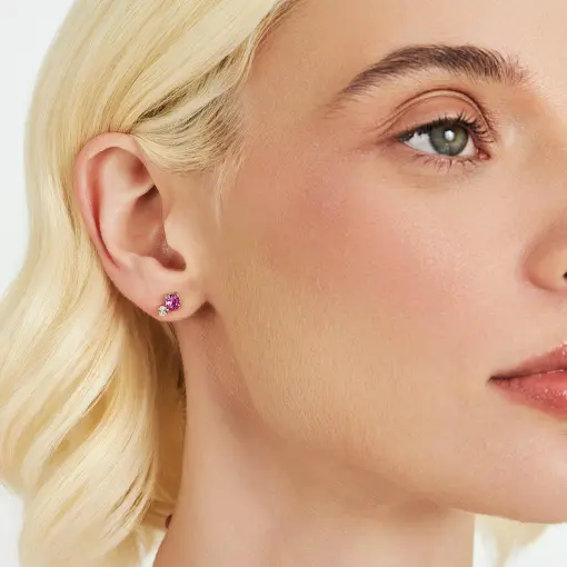 BRINCO DE FLOR COM CRISTAL E ZIRCÔNIAS PRATA RODINADA